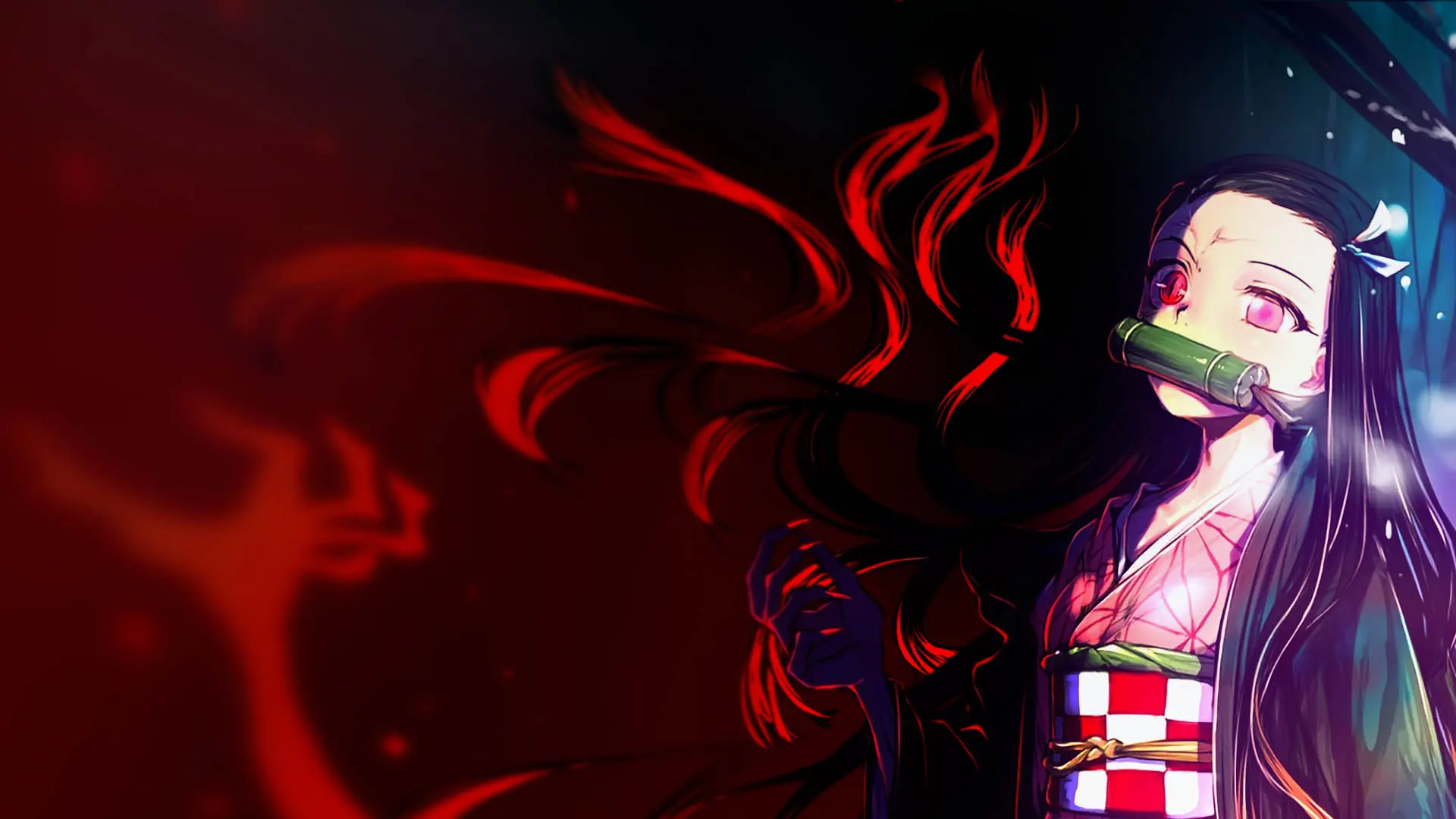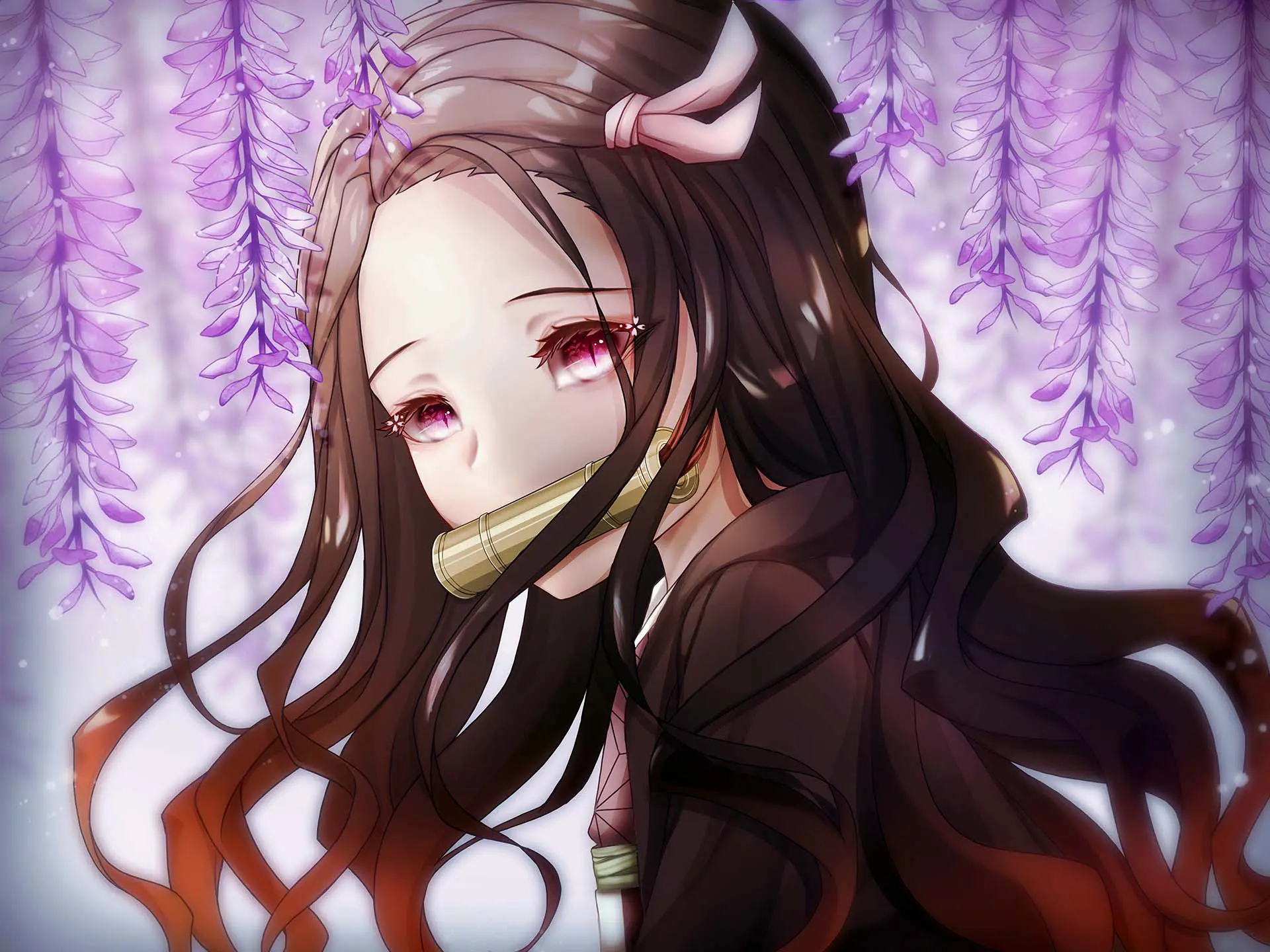 Hình nền thanh gươm diệt quỷ 3D Nezuko ngậm ống tre cầm dù tuyệt đẹp trong anime Kimetsu no Yaiba(Demon Slayer)