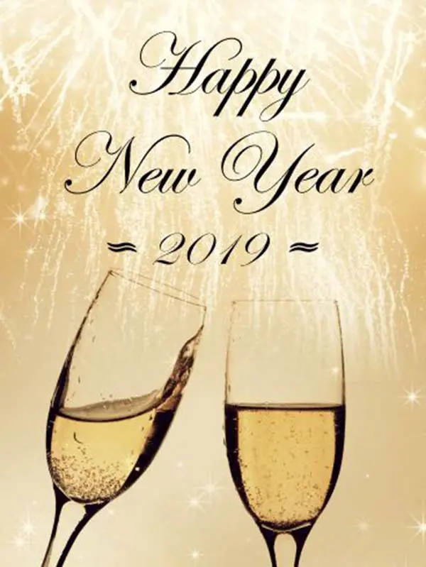 Thiệp chúc mừng năm mới 2019 2 ly rượu