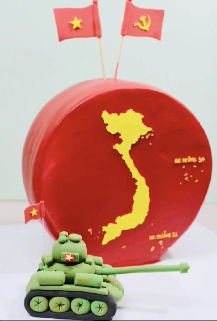 Hình ảnh bánh kem hình bản đồ Việt Nam và xe tăng