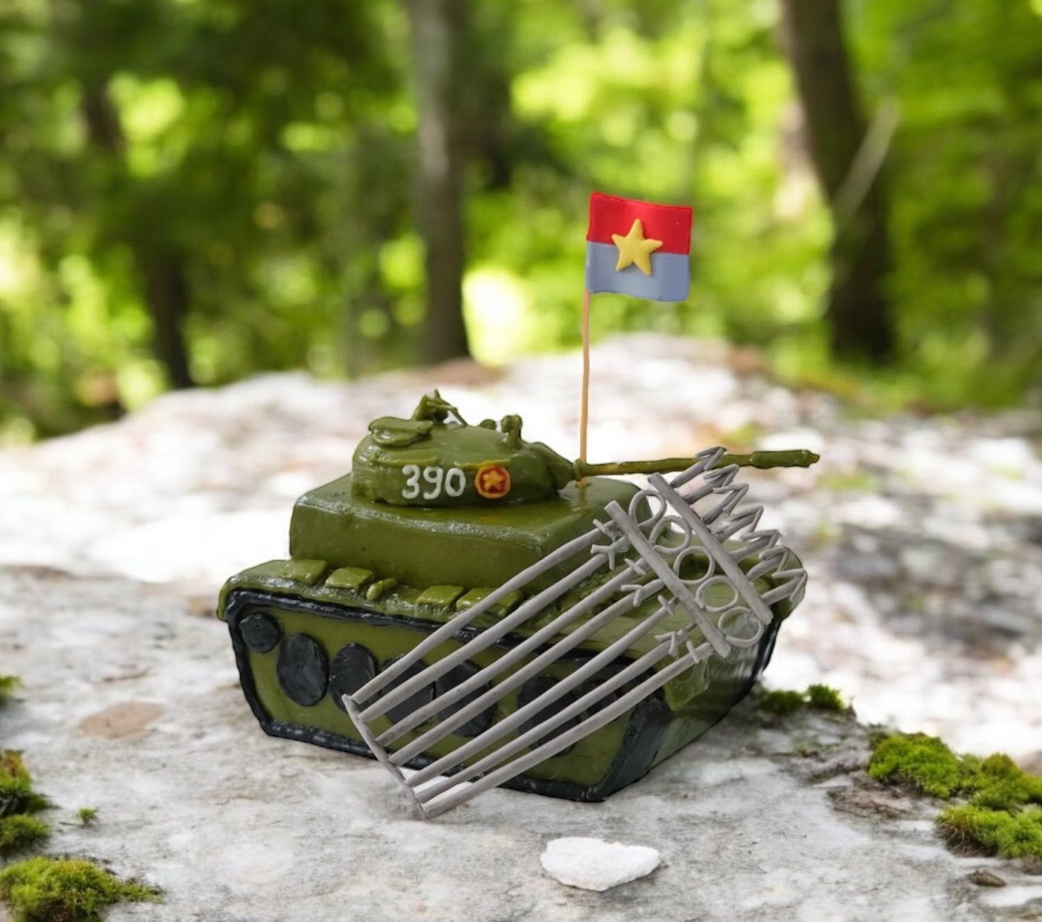 Hình ảnh bánh kem hình xe tăng húc đổ cổng Dinh Độc Lập giải phóng miền nam thống nhất đất nước
