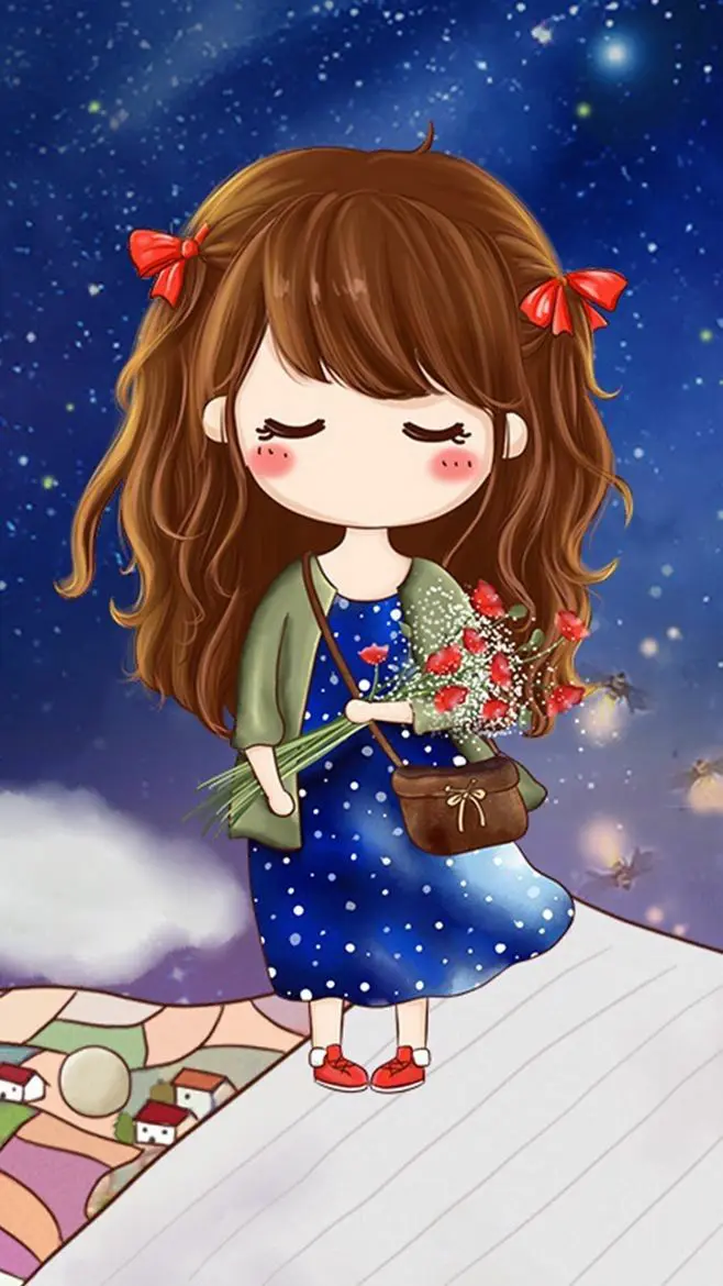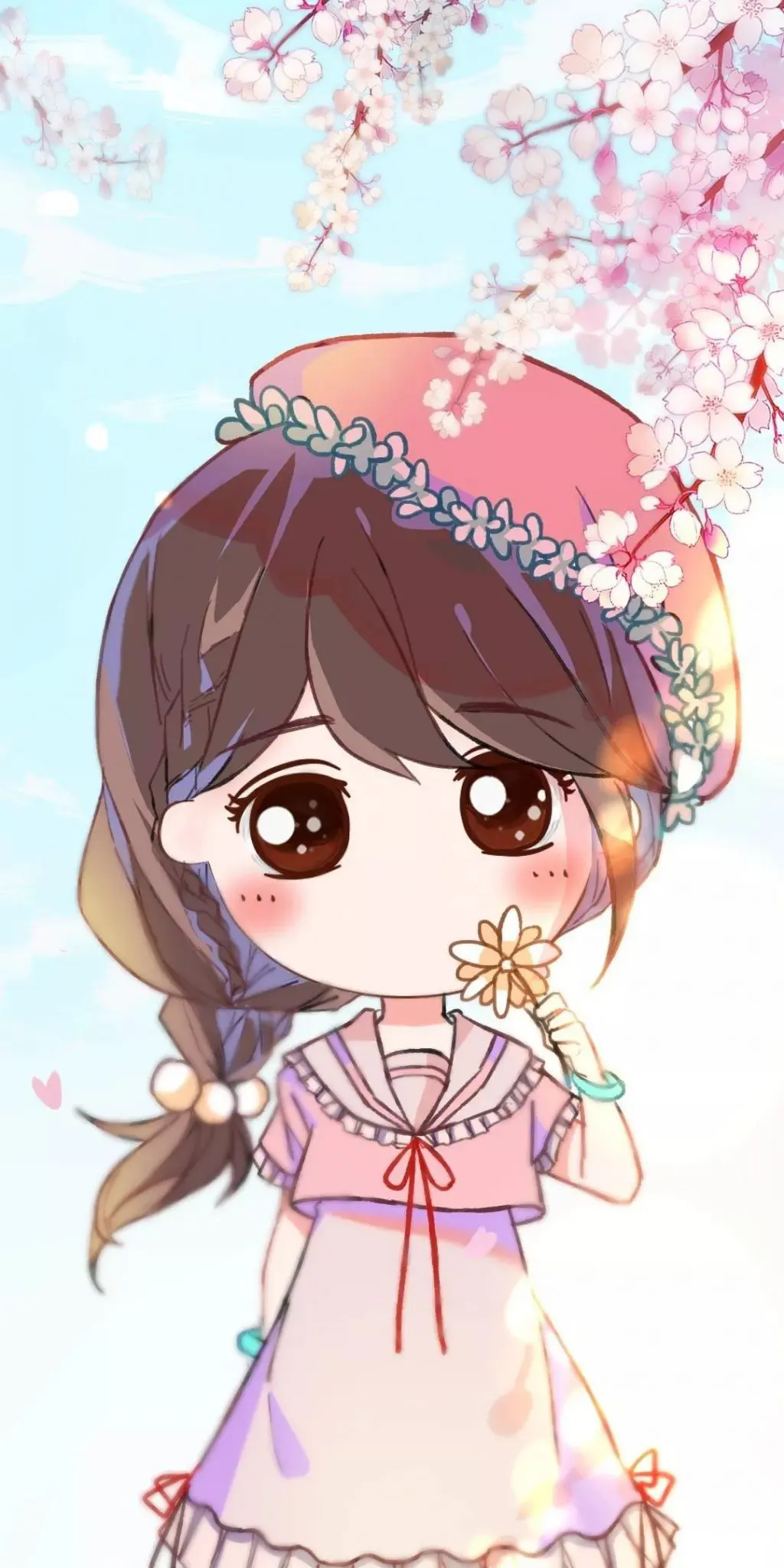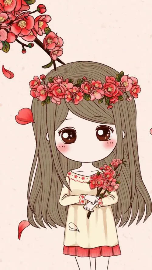 Hình ảnh anime chibi cô gái cầm bó hoa