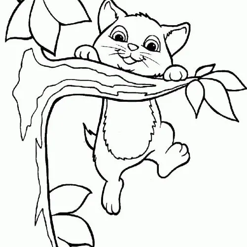 Tranh tô màu con mèo đẹp đang leo cây